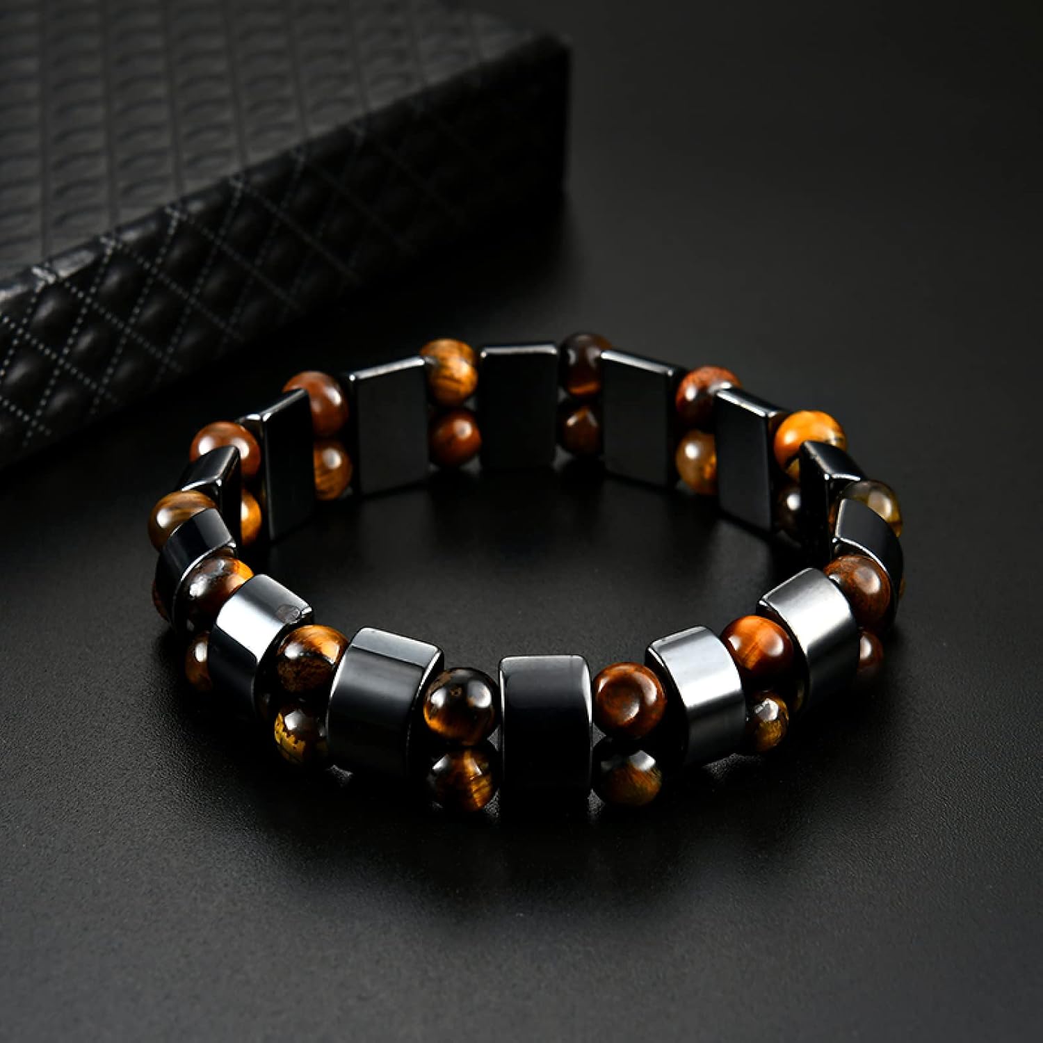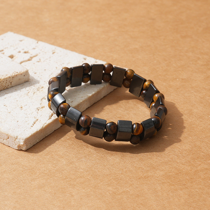 Made of hematite and tiger eye beads, featuring unique natural textures and a distinctive tactile feel for both beauty and quality.