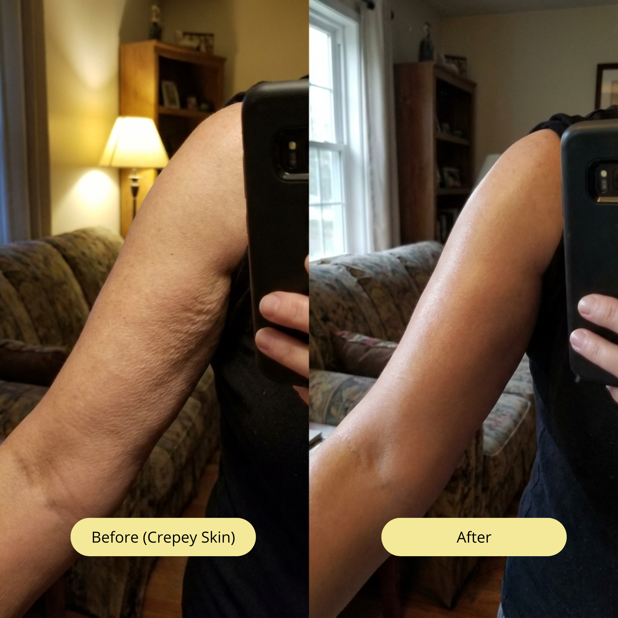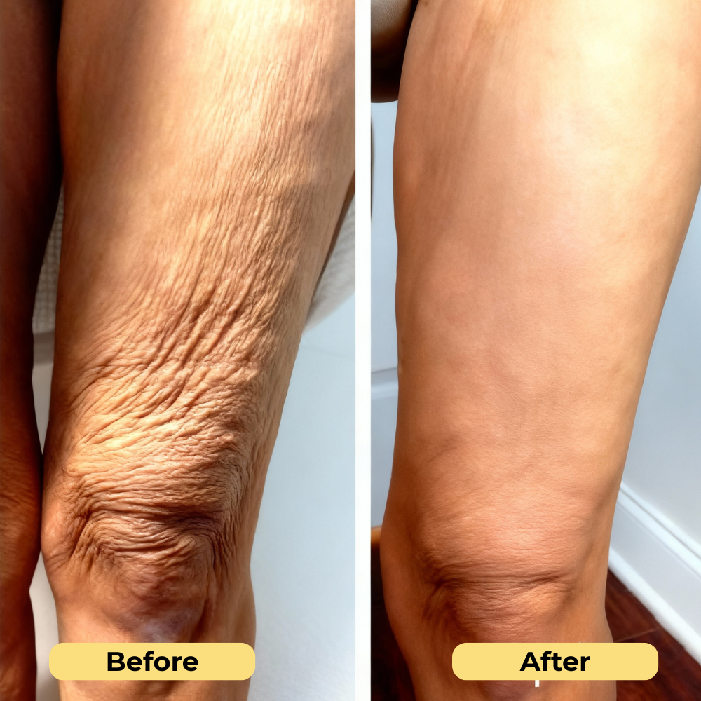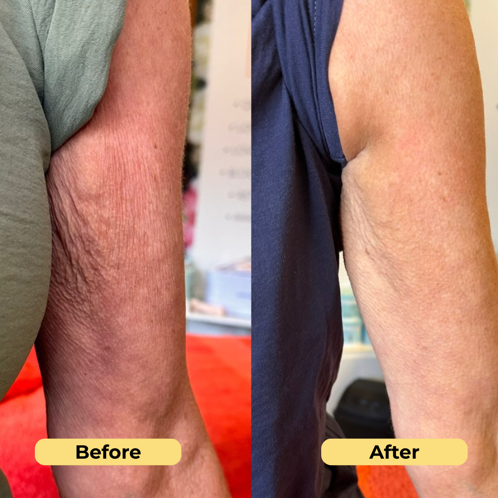 Our formula is powered by a blend of active tightening ingredients + rich hydration complexes designed specifically for crepey and aging body skin.