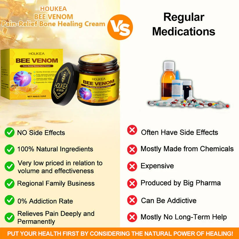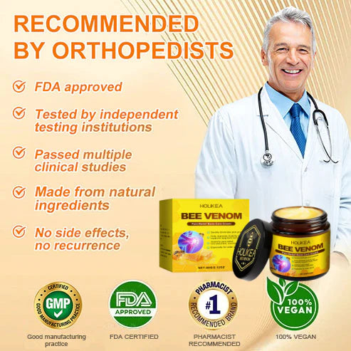 HOUKEA™ Bee Venom Pain-Relief Bone Healing Cream.This product is certified and recommended by the American Academy of Orthopaedic Surgeons (BOA), meeting their high standards to effectively relieve pain and promote bone health. Approved by orthopedic doctors, it relieves pain within 5 minutes, restores joint mobility in 7 days, and significantly improves arthritis symptoms in 4 weeks. Choose our Botulinum Toxin & Bee Venom Pain Relief Bone Healing Cream and enjoy reliable results and a pleasant experience with confidence.