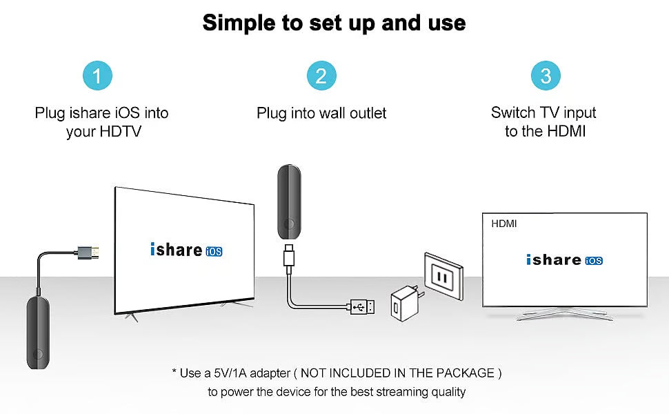 - Step 1. Plug ishareiOS adapter into your HDTV.