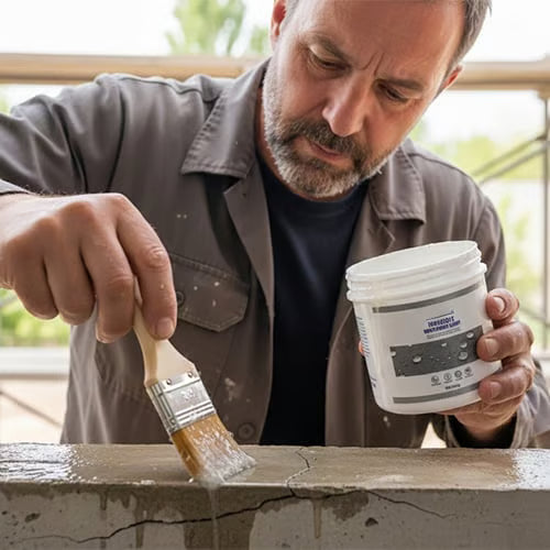 Brush the liquid generously over the crack, seam, or connection point. The liquid penetrates deep inside.